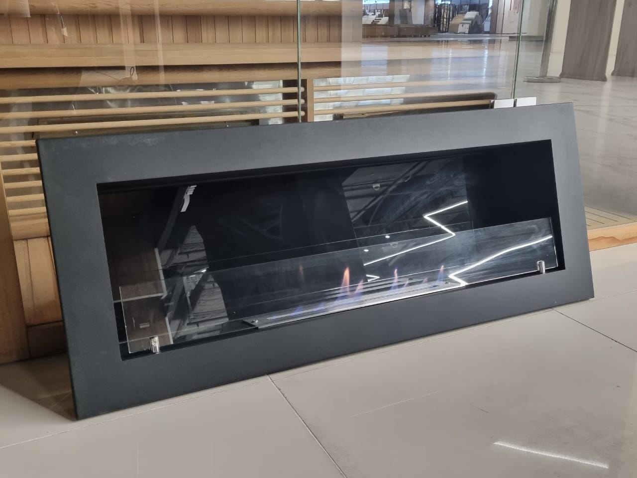 Встраиваемый биокамин DecoFire Atlas L отличается стильным дизайном и прочной конструкцией. Камин монтируется в нишу или в проем в стене и подходит для установки в городских квартирах, т.к. работает без дымохода, благодаря использованию в качестве топлива биоэтанола. Топливо находится в специальном герметичном контейнере, который обеспечивает защиту от протечек, что повышает пожаробезопасность.